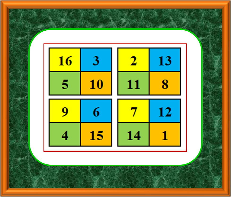compongan. Así, la “constante mágica” o matemática de un cuadrado de 16 cuadros